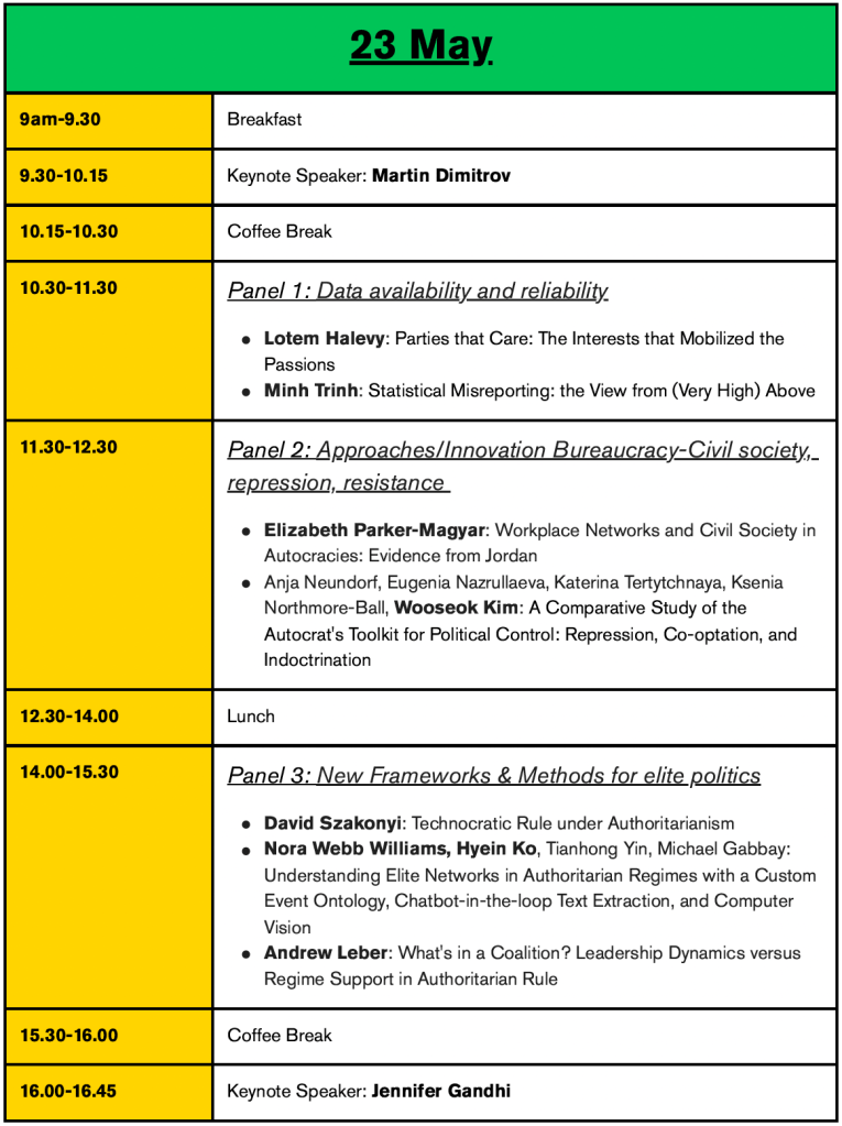We invited three keynote speakers to reflect on the challenges and opportunities the authoritarian politics field faces today. They are: